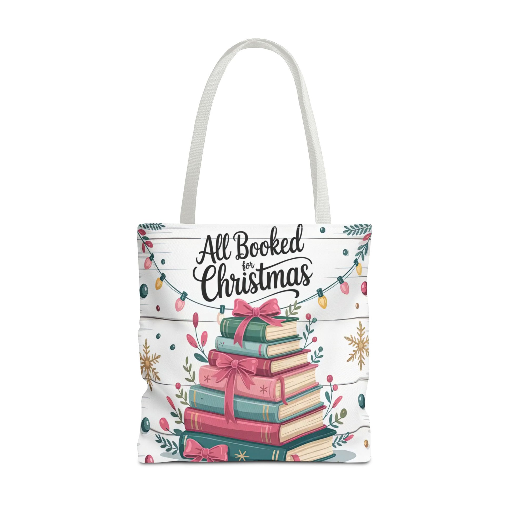 "All Booked For Christmas" Christmas Tote Bag | Festive Holiday Gift & Shopping Bag, Gift For Book Lovers