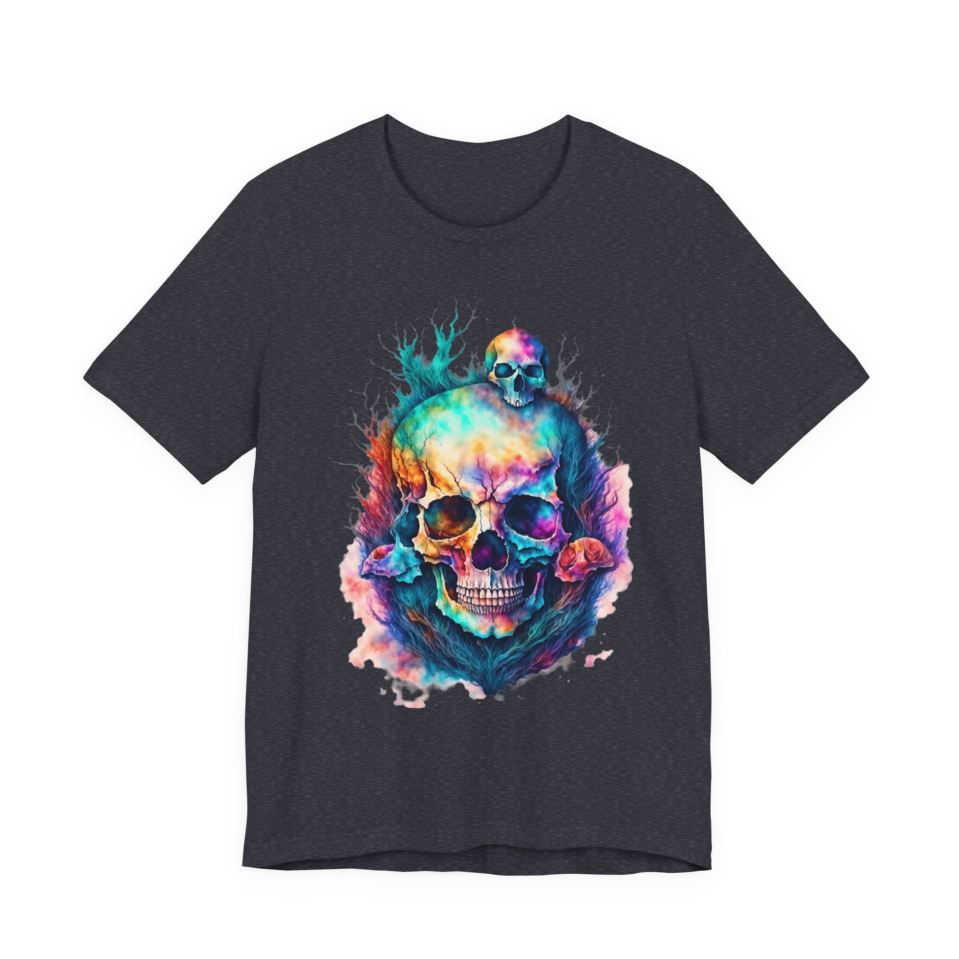 Colorful Skull Graphic Tee for Art Lovers, Unisex Jersey Tee for Halloween, Gothic Fashion, Unique Gift, Casual Wear