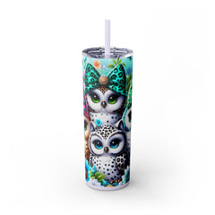 Cute Owls Skinny 20oz Tumbler With Straw, Perfect for Gifts, Floral Design, Drinkware for Owl & Animal Lovers, Travel or Home Use