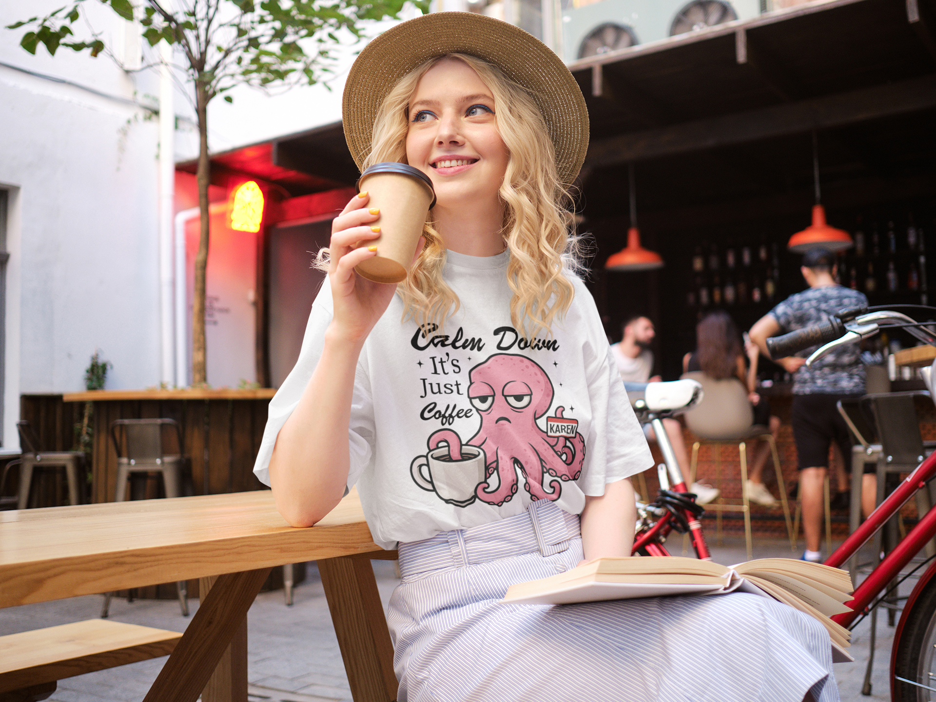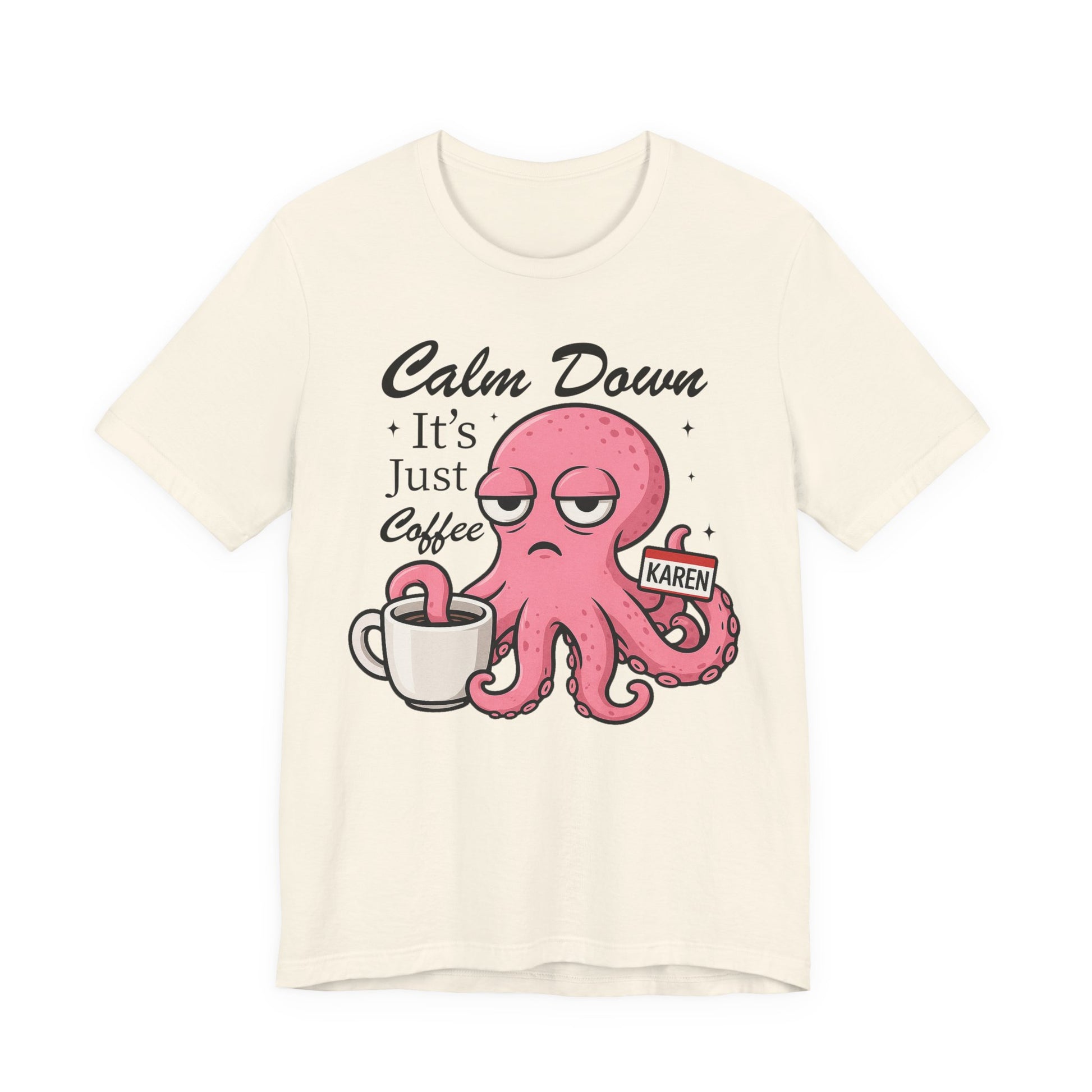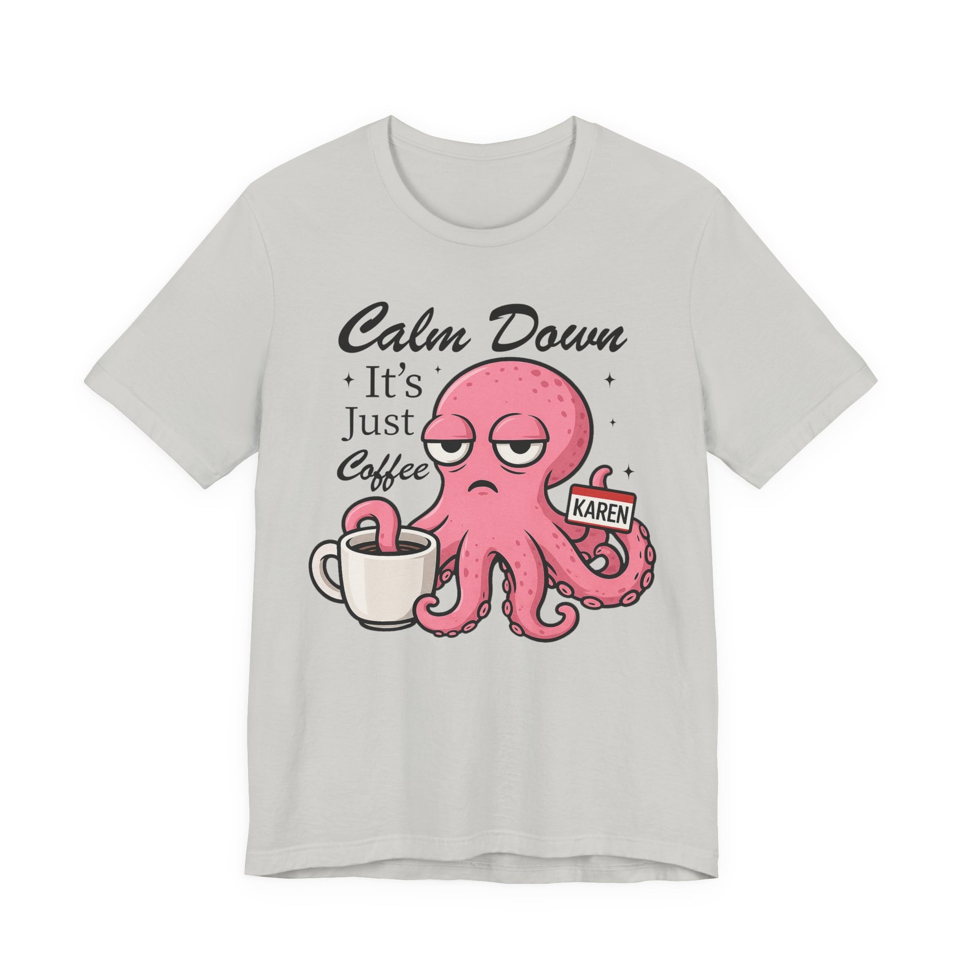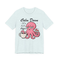 Funny Coffee Octopus Graphic Tee | Unisex Short Sleeve T-Shirt, Calm Down It's Just Coffee Shirt, Cute Graphic Top, Unisex Casual Wear