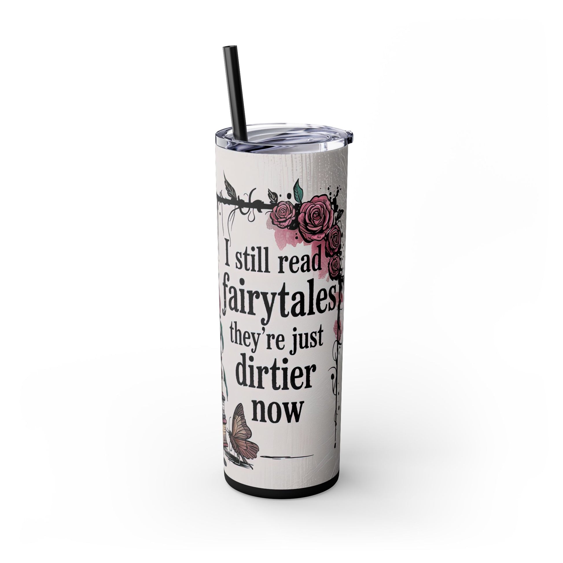 Gothic Dark Fantasy Romance Lover 20oz Skinny Tumbler With Straw, BookTok Girly Skull Design, Perfect Gift for Readers, Halloween Decor