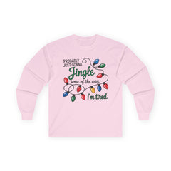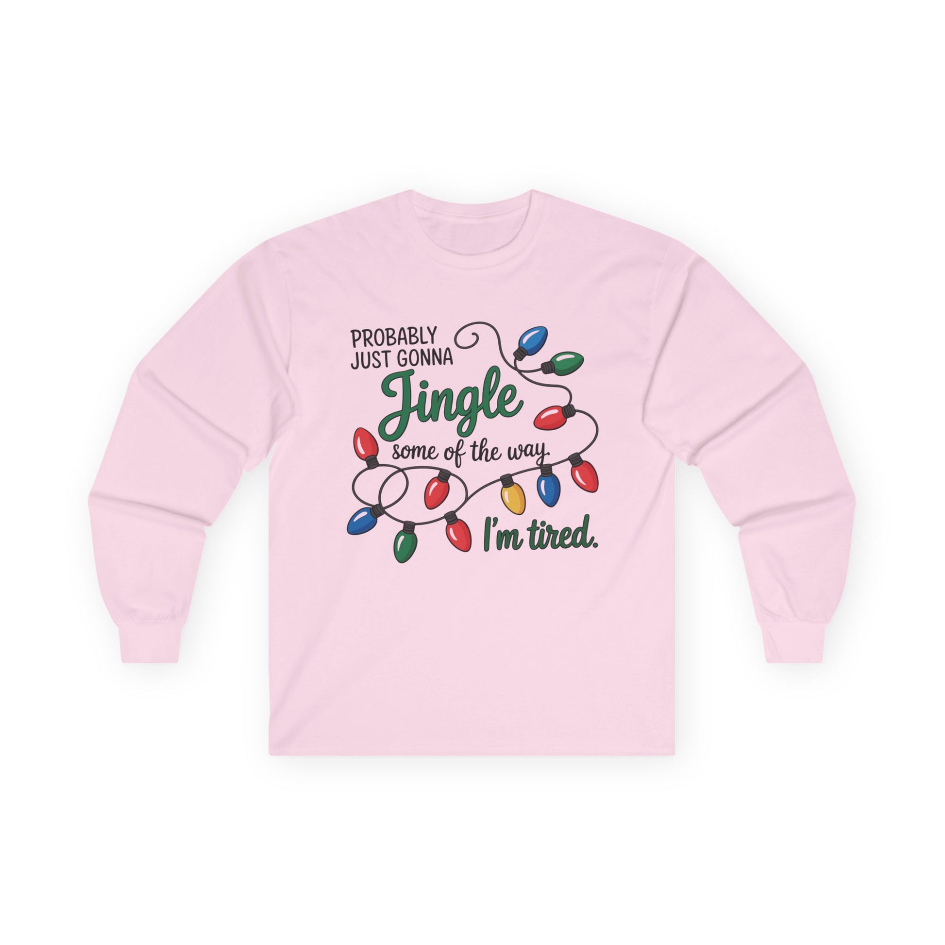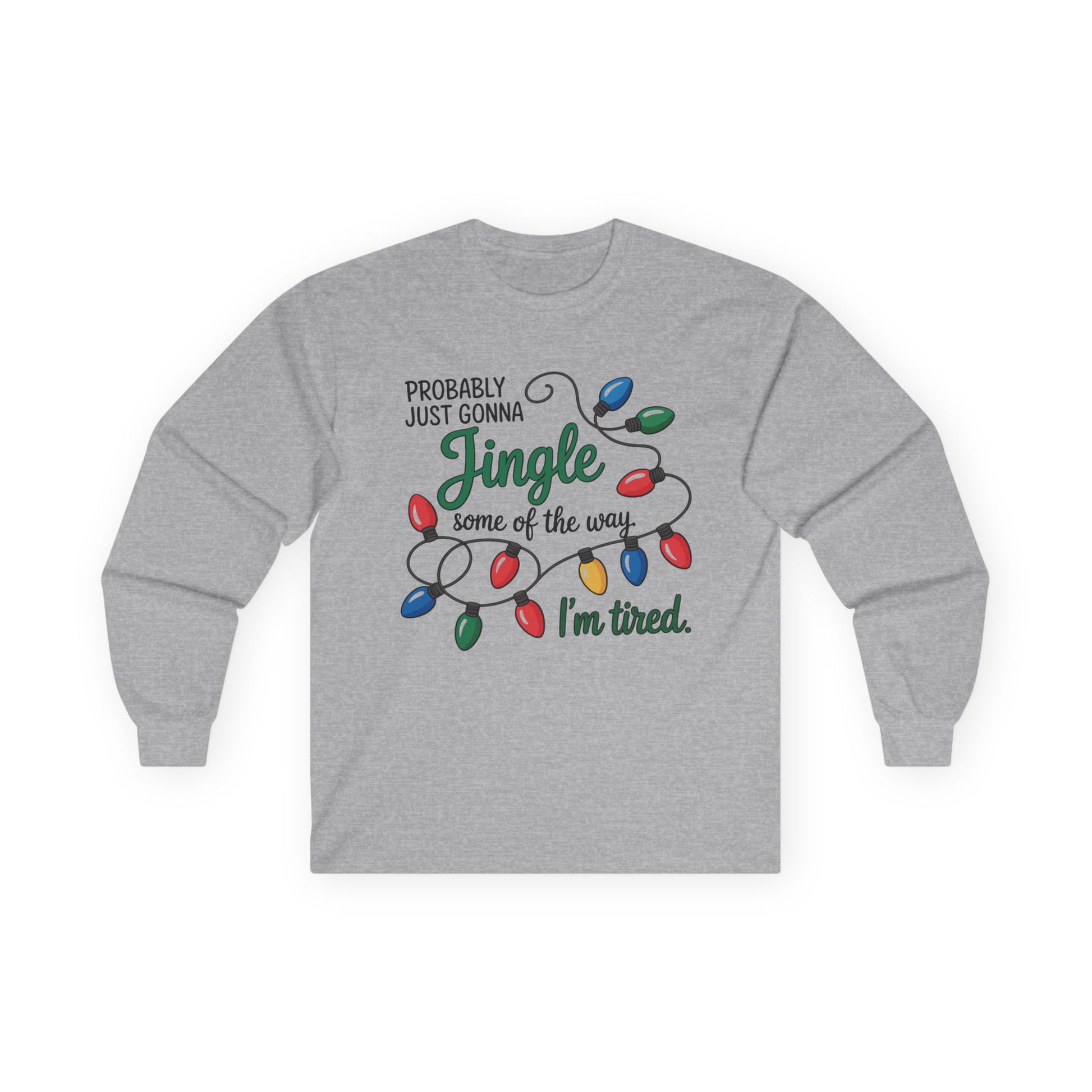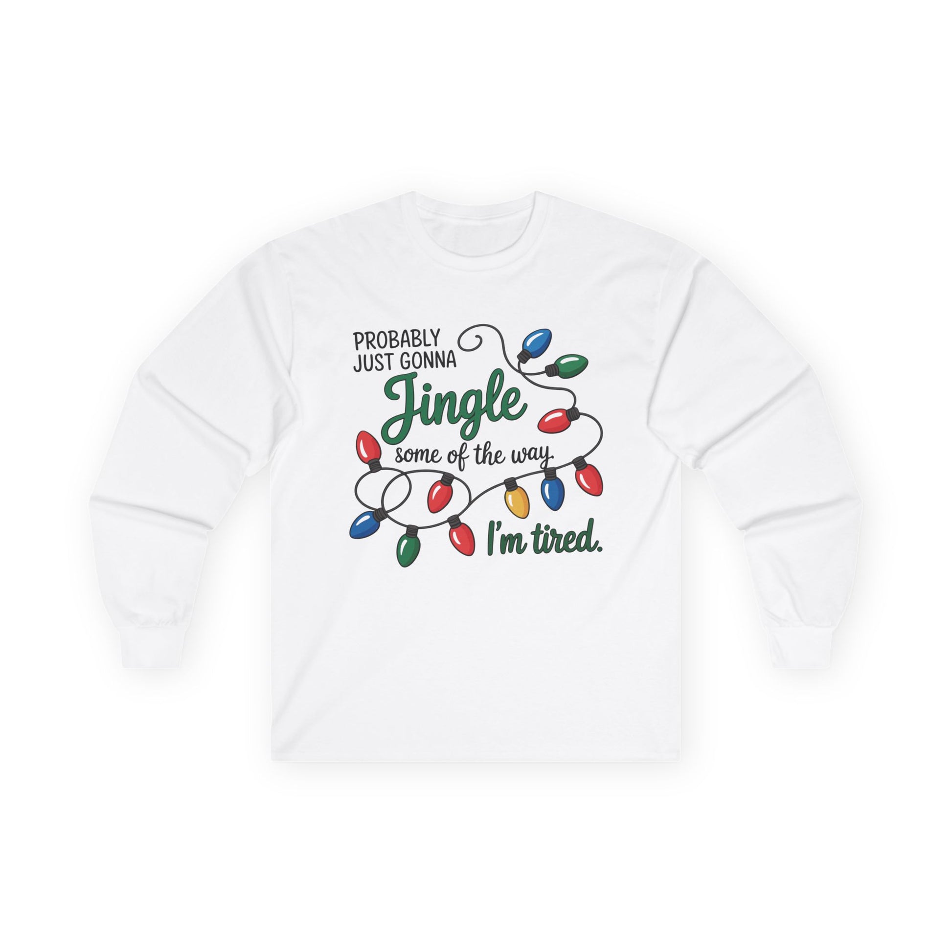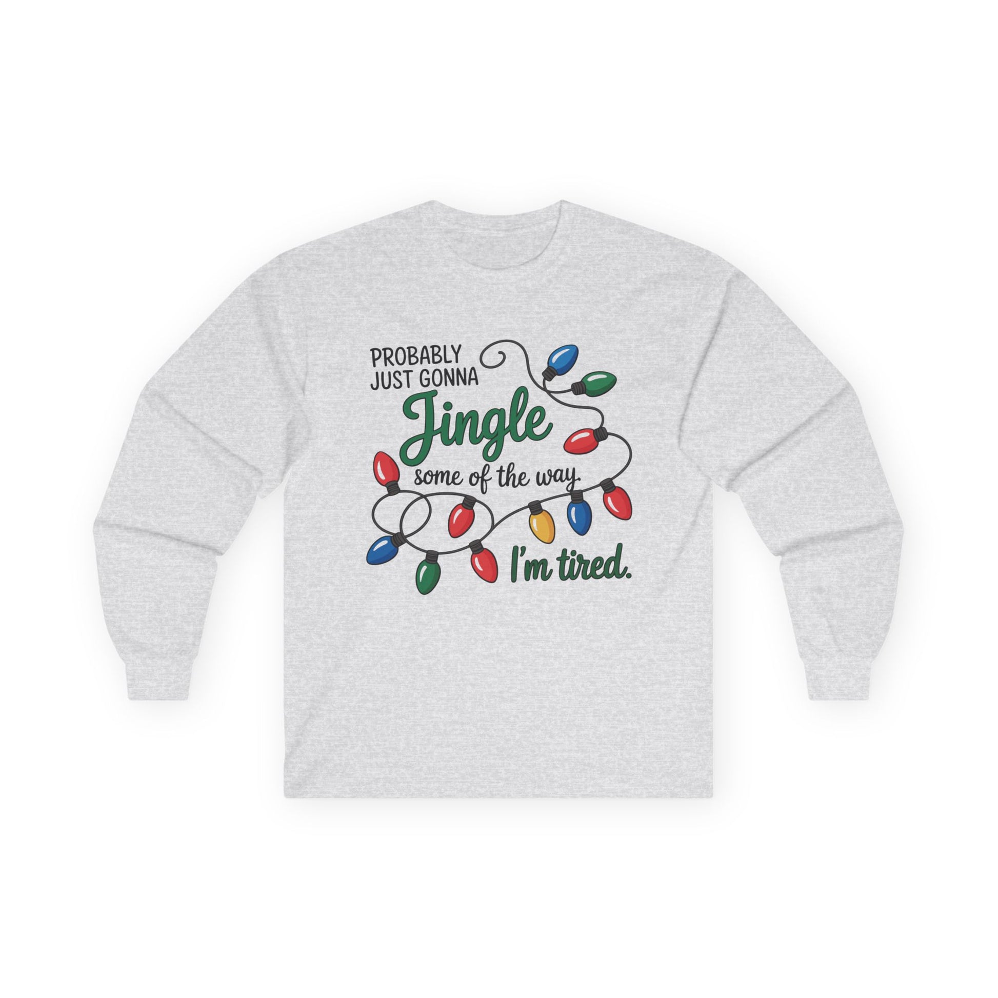 Jingle Bell Lights Funny Unisex Long Sleeve Tee | Humor Holiday Shirt, Probably Just Gonna Jingle Some Of The Way, I'm Tired