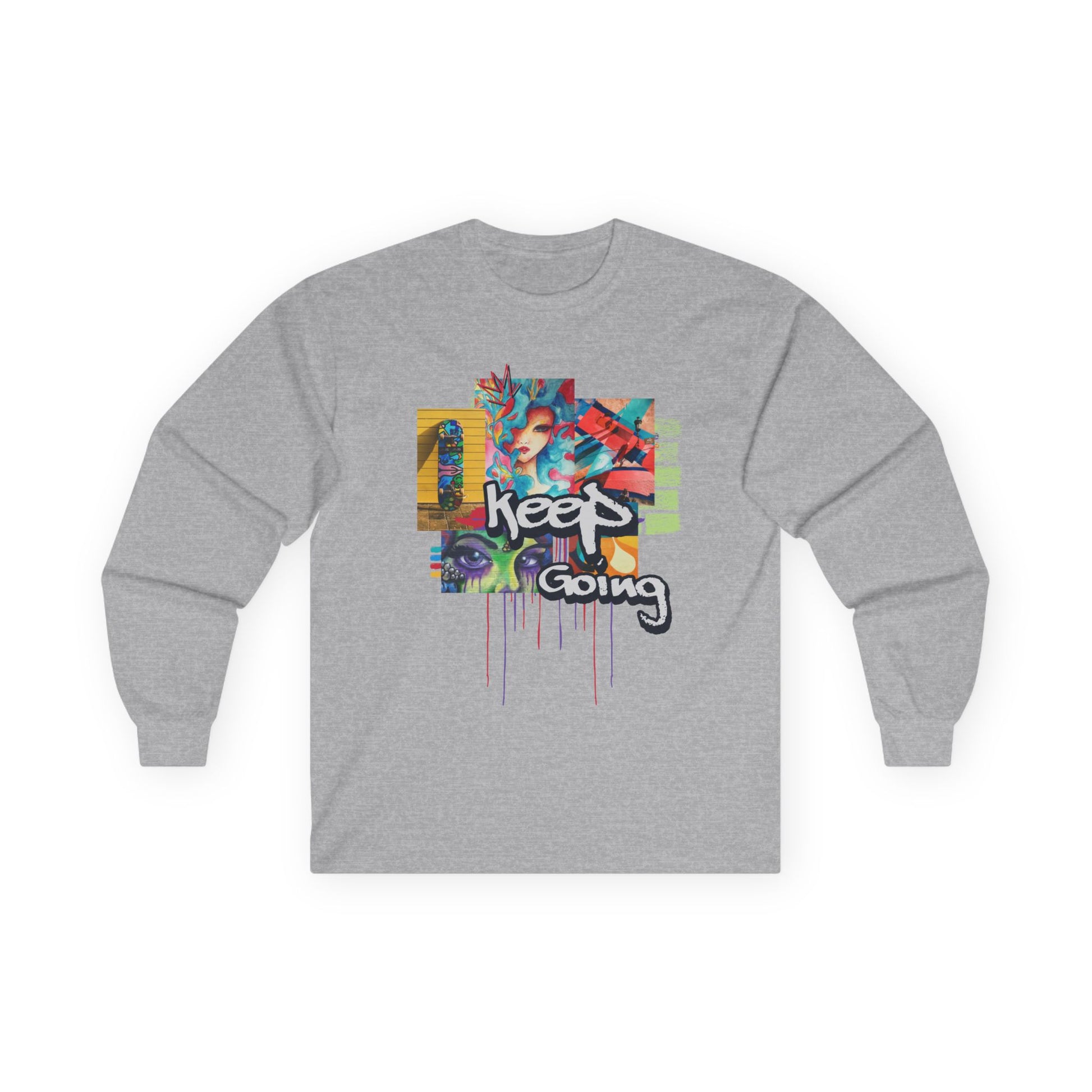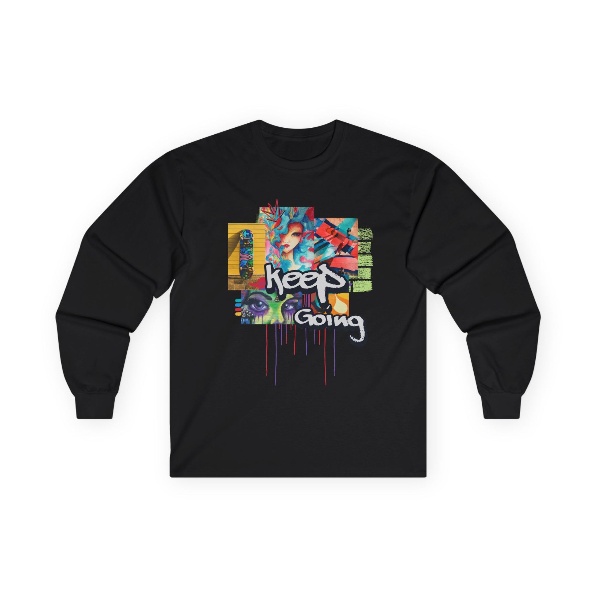 "Keep Going" Streetwear Art Collage Unisex Long Sleeve Tee | Streetwear Long Sleeved Shirt, Urban Clothing