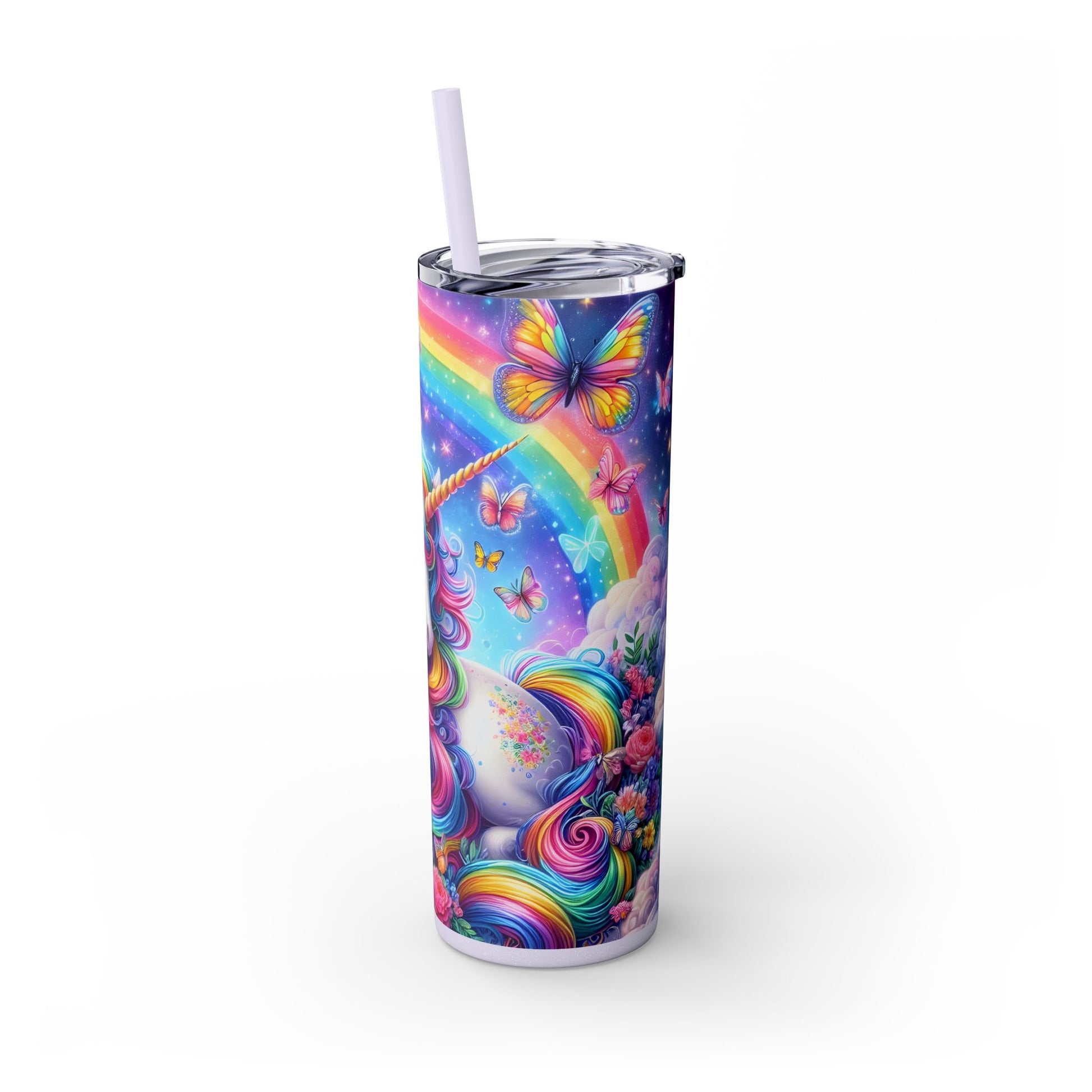 Magical Unicorn 20oz Skinny Tumbler With Straw - Reusable Drinkware for Kids & Adults, Birthday Gift, Rainbow Decor, Magical Decor