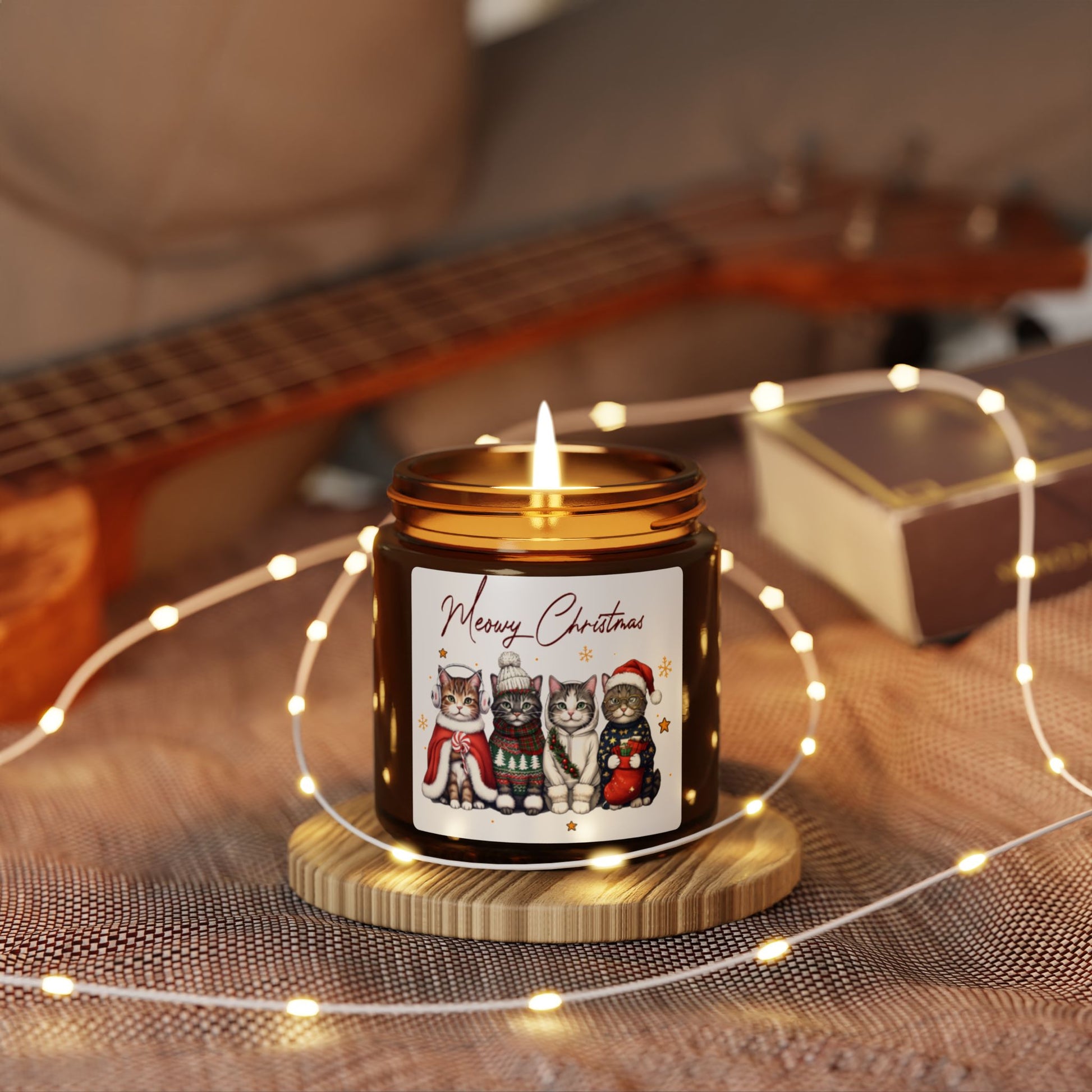 Meowy Christmas Cats Soy Wax Amber Jar Christmas Candle | Christmas Variety Scented Candle, Four Different Scents To Choose