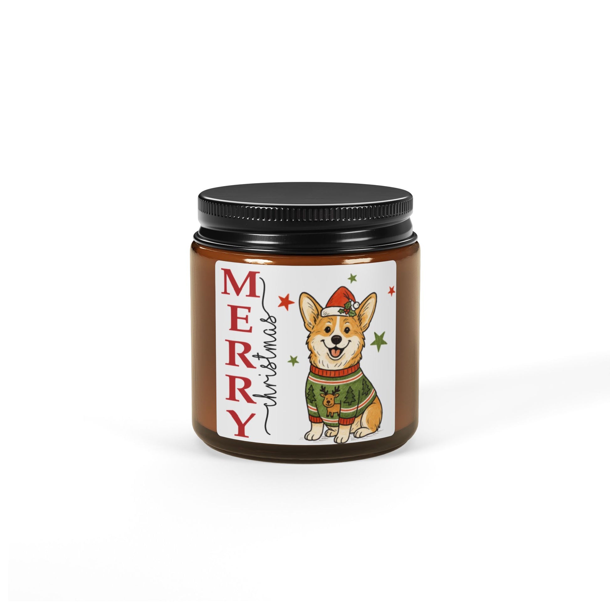 Merry Christmas Corgi Soy Wax Amber Jar Christmas Candle | Christmas Variety Scented Candle, Four Different Scents To Choose