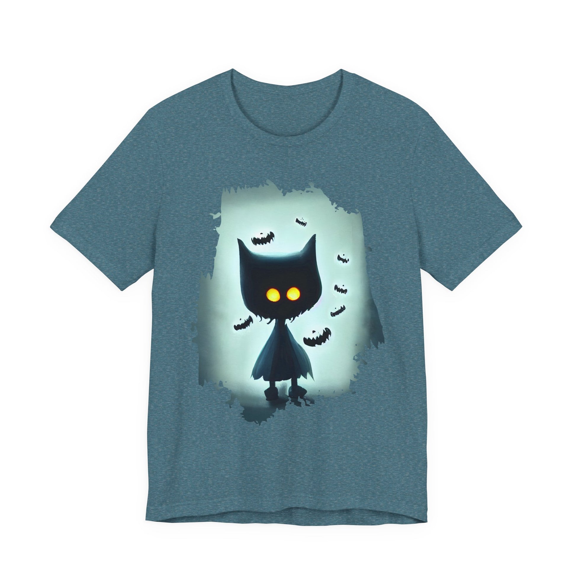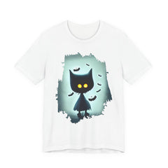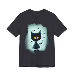 Mysterious Cat Tee for Cat Lovers, Perfect for Halloween, Casual Wear, Gift for Friends, Unisex Short Sleeve Shirt