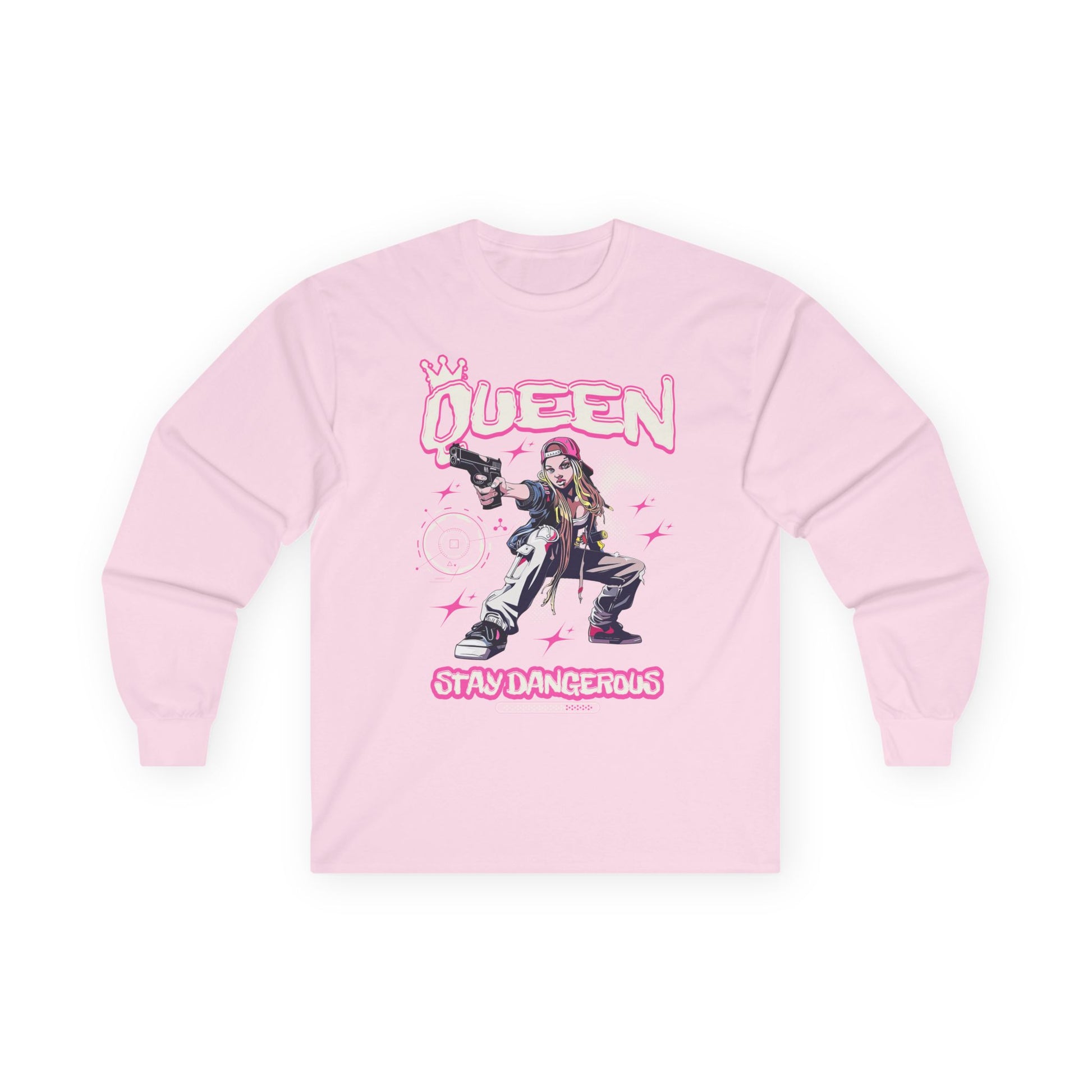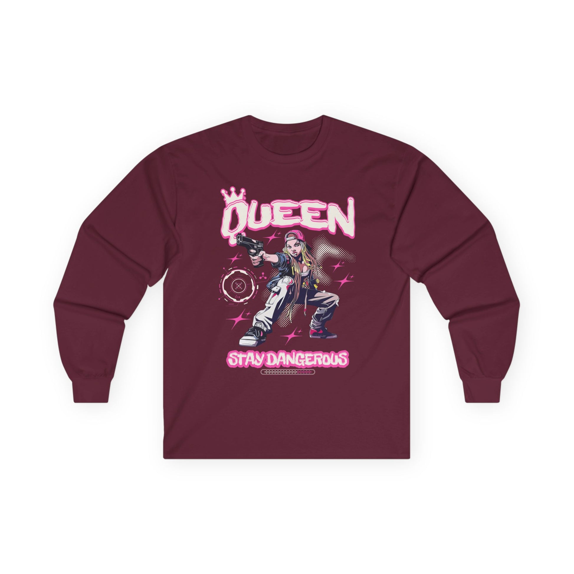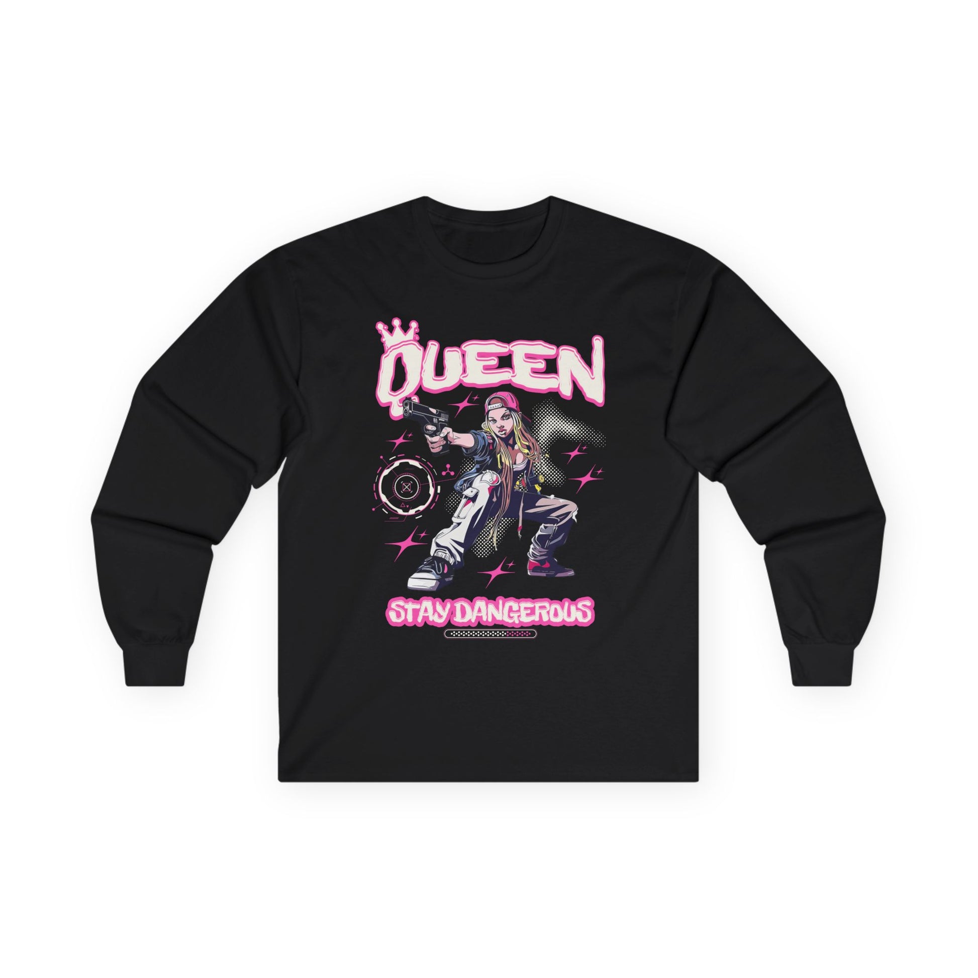 Queen "Stay Dangerous" Graphic Long Sleeve Tee | Edgy Anime Streetwear Shirt for Gangster Women