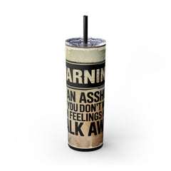 Warning I'm An Asshole - 20oz Skinny Tumbler With Straw - Fun Gift for Sassy Friends, Cool Drinkware for Parties, Adult Humor Cup, Unique Travel Mug