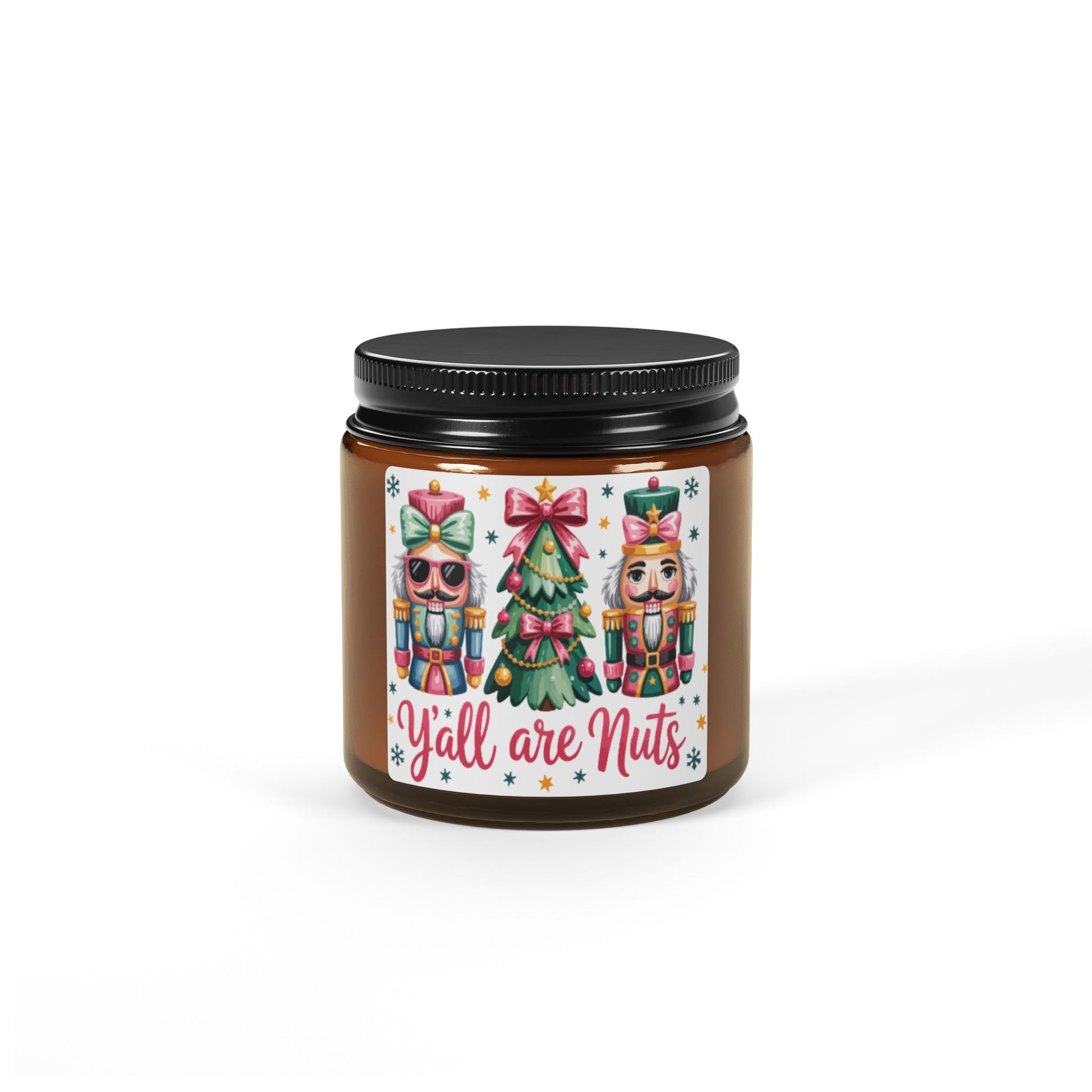 "Y'all Are Nuts" Nutcracker Soy Wax Amber Jar Christmas Candle | Christmas Variety Scented Candle, Four Different Scents To Choose