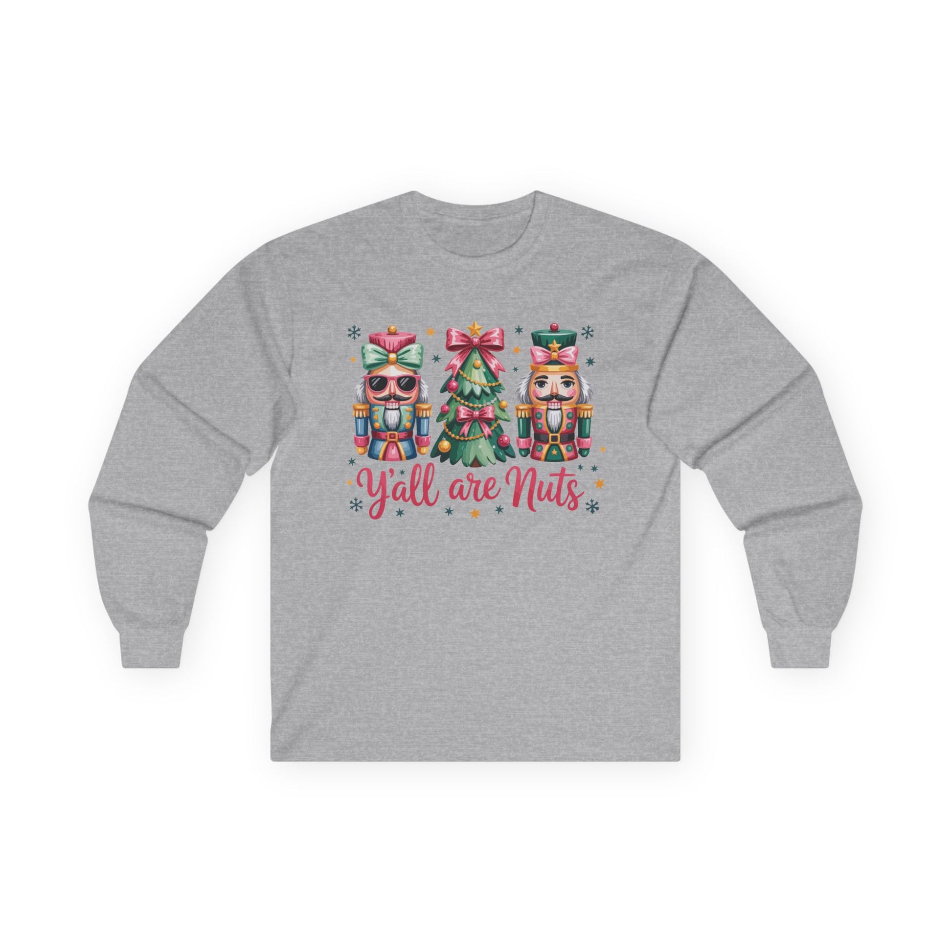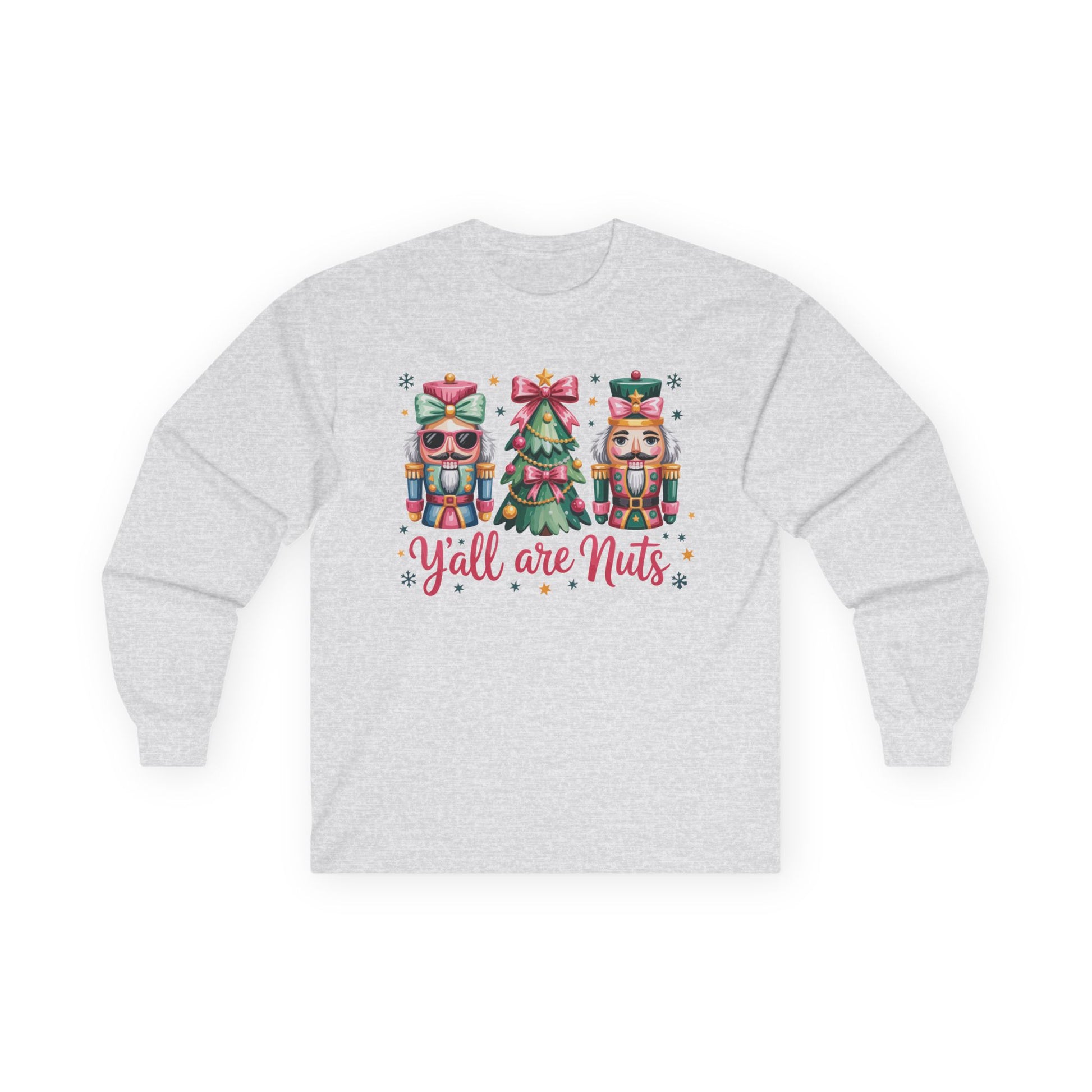 Y'all Are Nuts Unisex Holiday Long Sleeve Tee | Funny Christmas Nutcracker Shirt